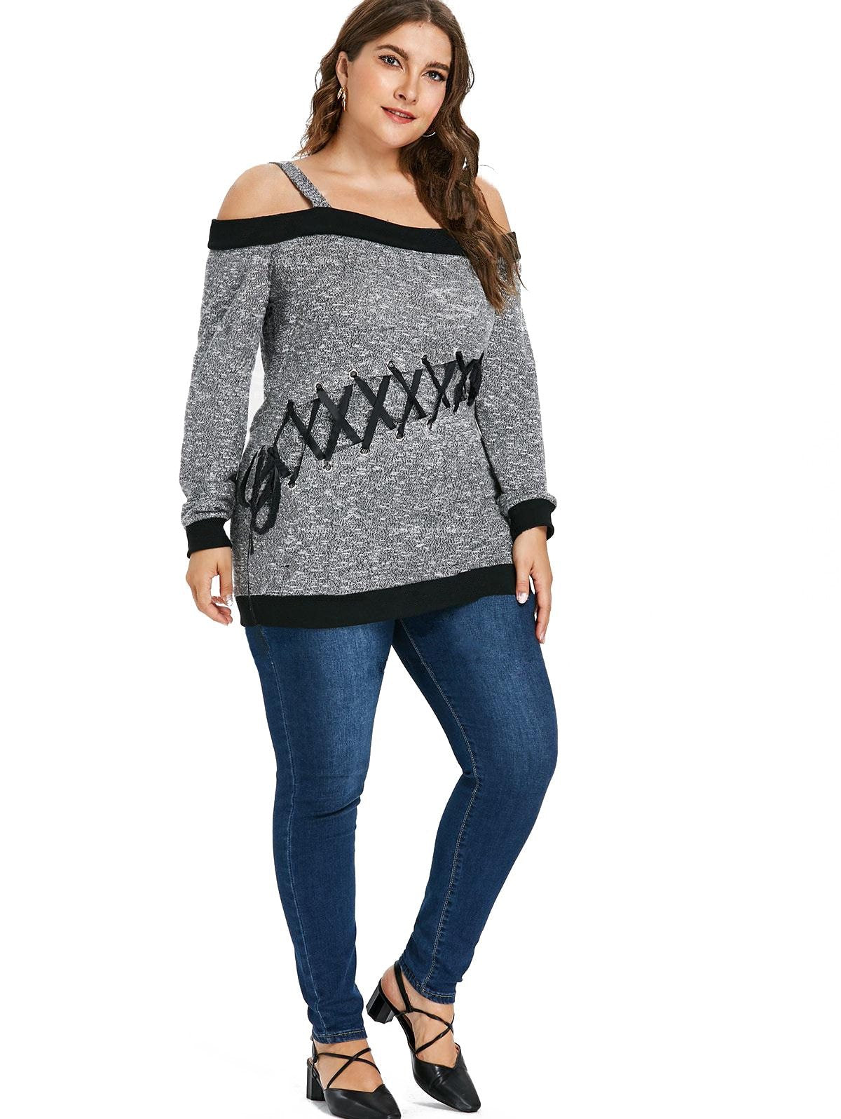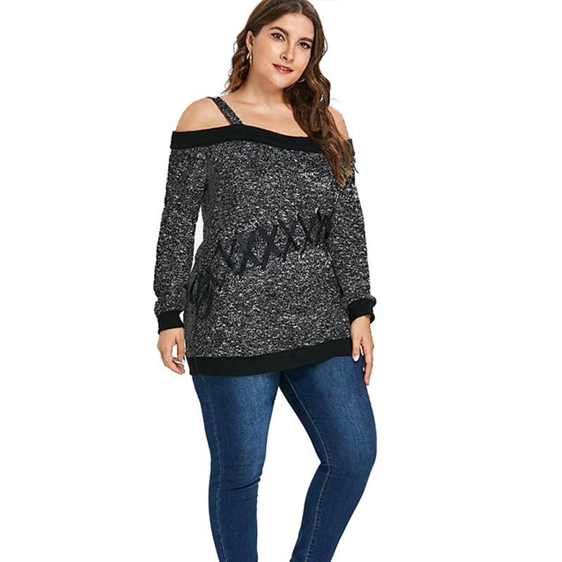Women's Autumn Sweater plus Size Large Size Long Sleeve off-Shoulder Top String Female Blouses Solid Thin Casual Sweater